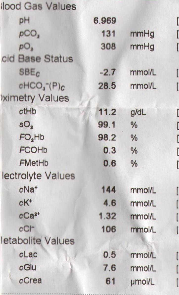 A further blood gas was taken on route (in the helicopter) using an I-STAT machine: