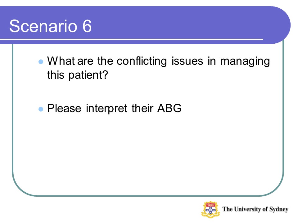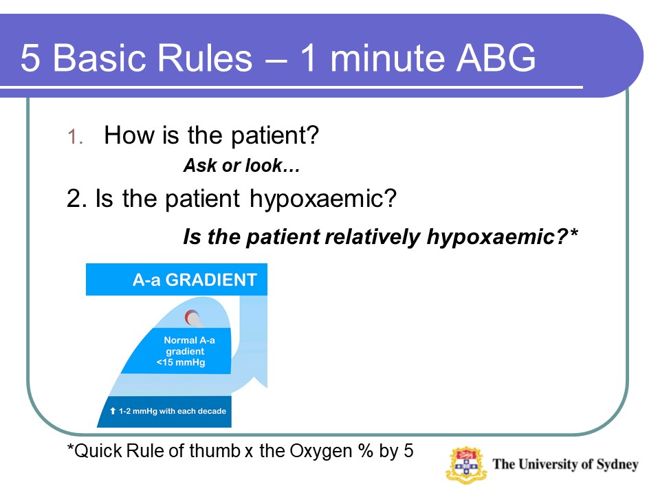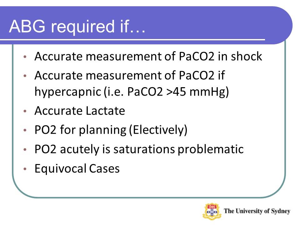 - Interpret the ABG in the ‘clinical context’ of the patient in front of you
