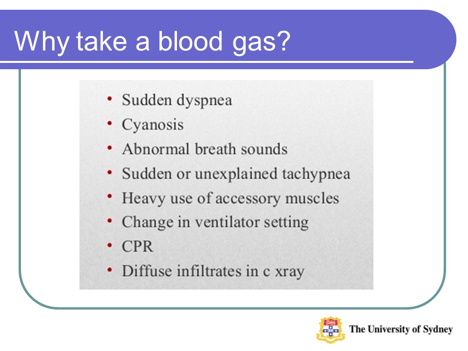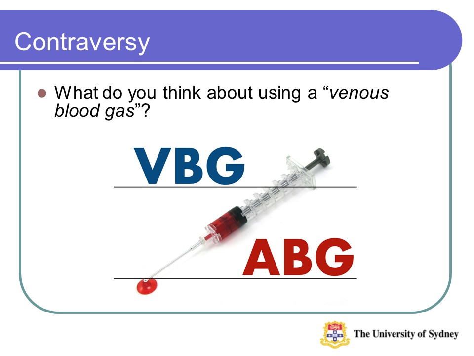 - Consider doing a Venous Gas – much of the important blood gas information can be elicited from a venous blood gas (and it is much less painful)