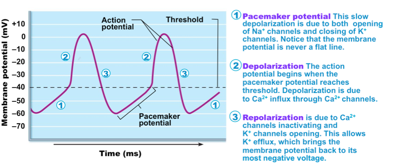 - This relates to the cardiac pacemaker action potential – a reduction in the concentration gradient (outflow) of K+ in repolarisation leads to reduced heart rate.