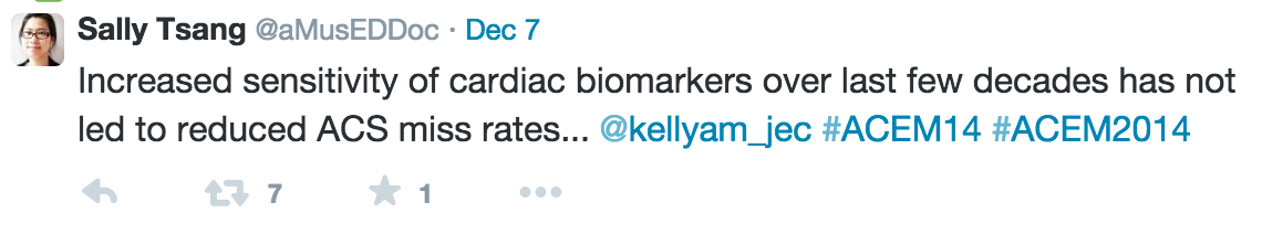 - The Cardiology community currently wants a ‘magic bullet’ rule out – they are focused on ACS and seeking more and more sensitive tests. The downside to this aim is a loss of gestalt, no consideration of other diagnosis and false positive results.
