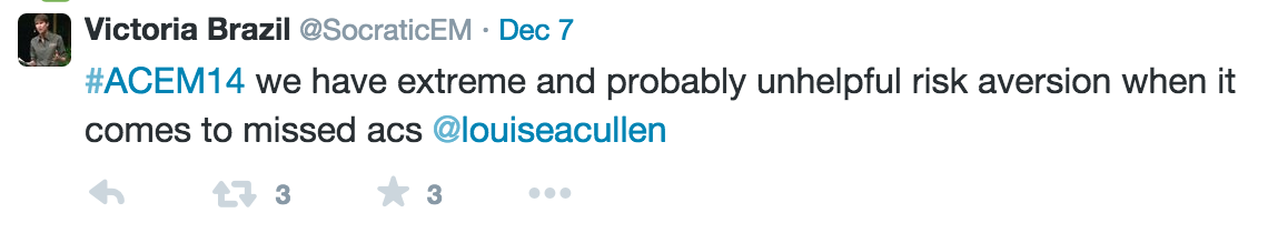 - David Newman – Dr Newman (who unfortunately had planned to speak but was in-absentia from theACEM conference) has argued a case against low yield work ups in low risk patients beyond a troponin in the ED