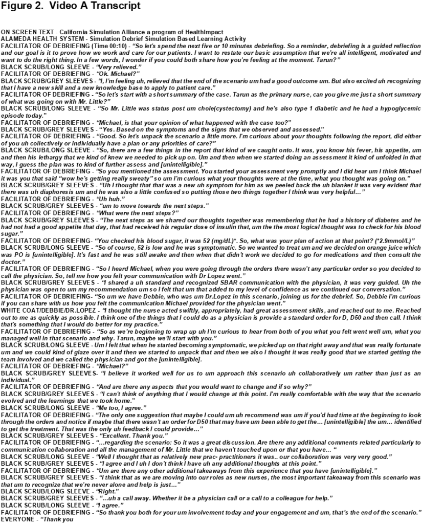 Debriefing Video A (December 2018) – California Simulation Alliance Health Impact (Origin – United States). Authors’ description – Filmed on location at Highland Hospital in Oakland, California, USA
