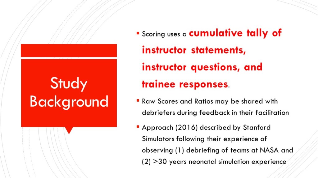 - Coggins A, Hong SS, Baliga K, Halamek LP. Immediate faculty feedback using debriefing timing data and conversational diagrams. Adv Simul (Lond). 2022 Mar 7;7(1):7.