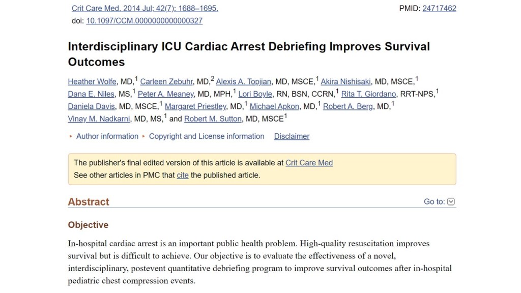 Some clinicians believe that clinical debriefing should be limited to cardiac arrest cases and “bad outcome” situations. However, our local experience is that rich learning for individuals, teams and systems can come from many other types of case. Indeed, in our audit debriefings typically took 10 minutes, involved on average 7 people and were led by both nurses and doctors…